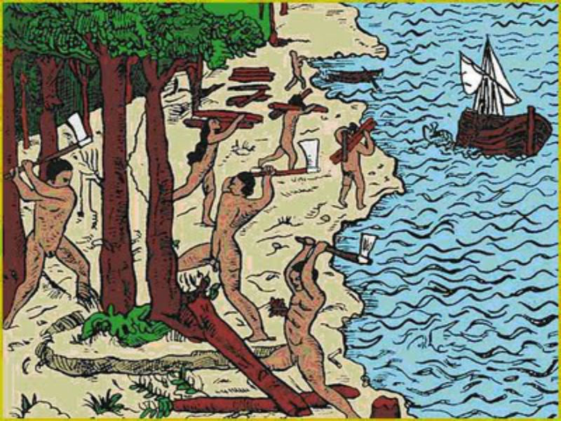 Portanto, a palavra Brasil deve-se a duas origens. Por um lado, a velha palavra gaélica “bresail” ou “brasail” (bem-aventurança), e, pelo outro, a também antiga palavra “bracil”, “berzino”, etc. (que permanece no inglês em brazier que quer dizer brasileiro, ou no francês braise, que são brasas, portanto, cor de fogo para a tinta obtida da madeira).